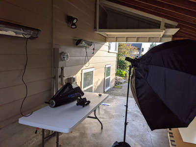 I've also installed outdoor heaters to take the chill off (It still gets a bit cold, so please no newborn sessions, and dress yourself and your little ones accordingly). I also wear a mask during the whole session with me.